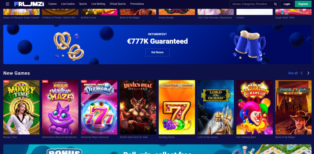 Egal, ob du auf funkelnde Slots, klassische Tischspiele oder Live-Spiele mit echten Dealern stehst — Frumzi hat alles, und es ist alles verfügbar, sobald du deine erste Einzahlung tätigst 💼🕹️. Schauen wir uns an, warum dieses Casino 2025 eine Top-Wahl für clevere Spieler ist.