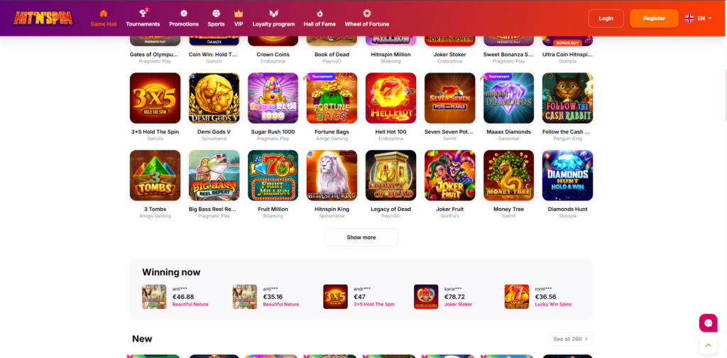 Hit’N’Spin ist kein einfacher Slot-Lagerplatz. Die Spiele sind kuratiert – wie eine Spotify-Playlist: das Beste aus jedem Genre, nach Stimmung sortiert.